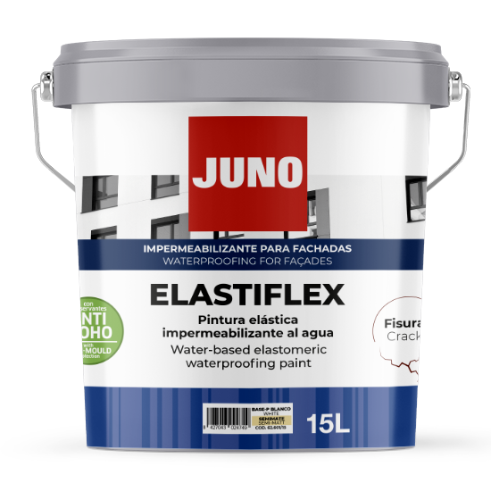 Elastomeric Pure Acrylic Waterproof coating based on photo-crosslinkable resins in aqueous dispersion. Elastiflex is an elastic breathable coating, resistant to the formation and growth of microorganisms. Product forms a continuous elastic and waterproofing film which creates an effective barrier against concrete carbonation, minimizing risk of corrosion in any type of reinforced structure. Crack bridging capacity up to 1,5mm. Contains anti-mould preservatives. Permanent elasticity from -30ºC to +60ºC.